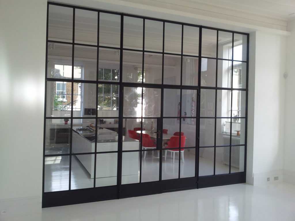 Еще одна разновидность каркасной перегородки — французское остекление. Здесь стекло в каркасе не целое, а разделенное импостами. При повреждении стены разбиваются не все стеклянные элементы, что способствует более быстрому восстановлению при минимальных затратах.