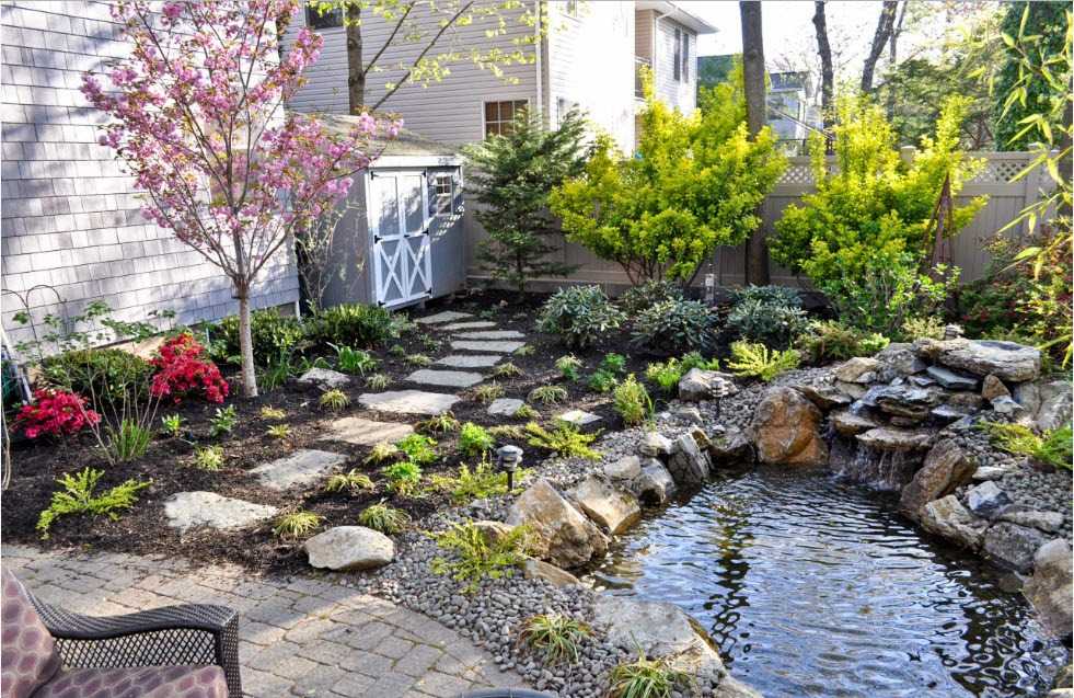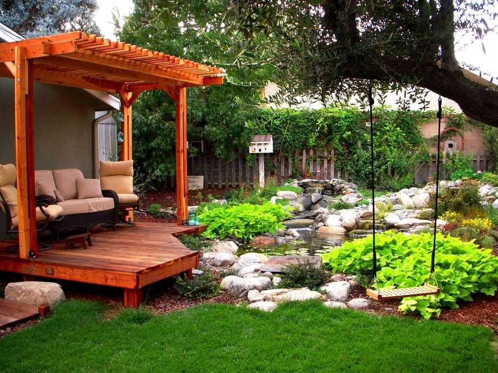 Чаще всего водоем располагается в зоне отдыха: около беседки, зоны барбекю, детской площадки. Это делается для того, чтобы им можно было наслаждаться, а не просто проходить мимо.