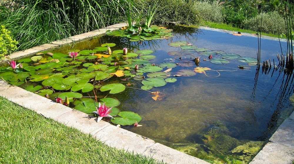 Наличие естественного освещения. Из-за того, что водоем создается искусственно, необходимо помнить, что уровень воды в нем зависит только от вас. Если расположить его в сильно освещенном месте, то вода может зацвести, испортиться или испариться.
