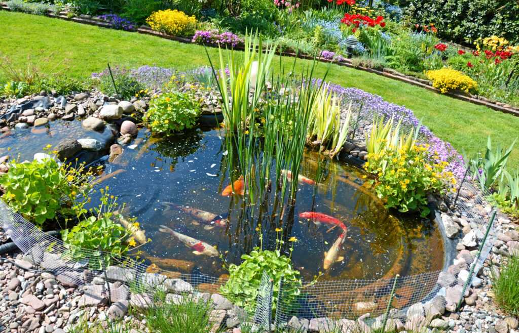 Летом удаляйте окружающие водоем сорные травы и появляющиеся в воде водоросли. Применяйте для очистки воды сачки с граблями и другие инструменты.
