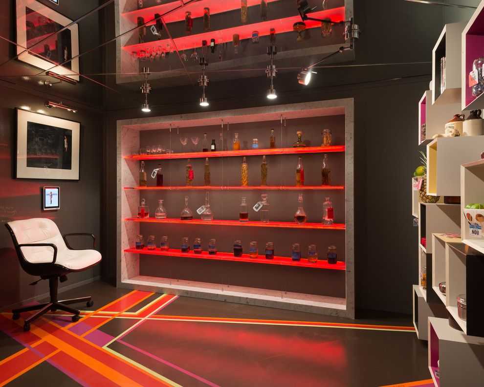 Создать трендовый дизайн интерьера получится, если сосредоточить на потолке некое подобие мозаики. Для воплощения этой идеи можно подобрать плоские светильники. Хорошо, если мозаика будет одинаковой геометрической формы. Светильники можно разместить на потолке в соответствии со строгим порядком, либо хаотично.