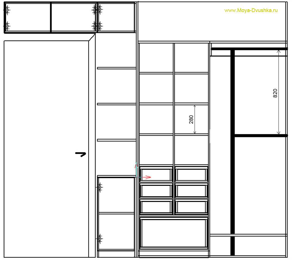 - выдвижные ящики — самая распространенная начинка для шкафов. Для детской комнаты не рекомендуется наличие ящика, из-за острых углов. Ребенок может забыть закрыть ящик и случайно травмироваться.