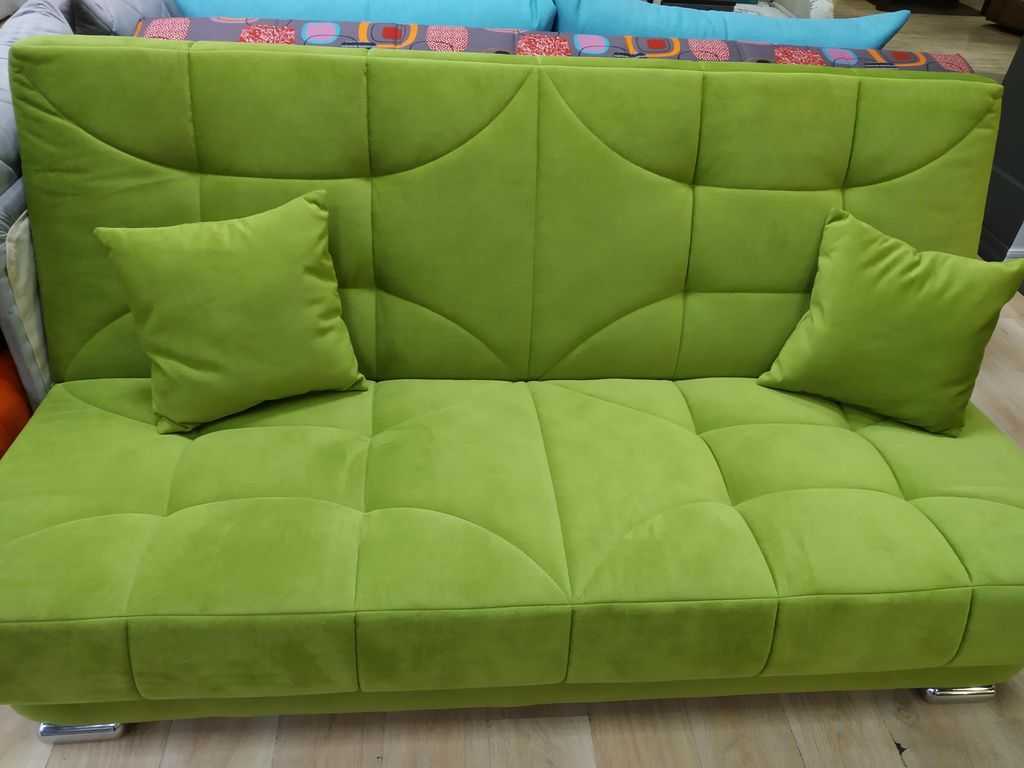 - Клик-клак. Плюсы: маленькая стоимость, надежная «раскладушка», прочный механизм. Недостатки: небольшой размер, иногда отсутствует спинка, при трансформации нужно отодвинуть от стены.