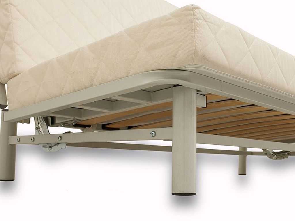 - Французская раскладушка. Сложенный вдвое дополнительный элемент ортопедической решетки располагается под сиденьем. При необходимости он поднимается, выдвигаясь вперед на 1,5-1,8 метра.
