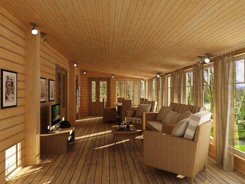 Жилая веранда, отделанная деревомИсточник pingru.ru