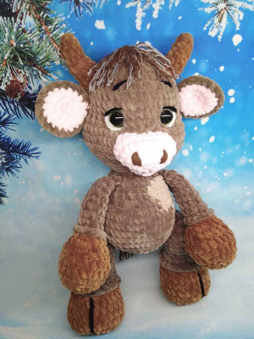 Для создания тотемного животного 2021 года, помимо перечисленных выше приспособлений, дополнительно понадобится пластиковый стаканчик, который будет выполнять роль туловища Быка. Скручиваем из проволоки заготовки – каркасы для рогов, ушей, хвоста и ног животного. Затем обматываем детали верёвкой или шпагатом, концы которых фиксируются при помощи клея. Следующим шагом будет закрепление частей фигурки на пластиковом стаканчике и обматывание используемым материалом всей основы. Отдельно скручиваем верёвку или шпагат в виде мордочки, прикрепляем к туловищу и украшаем глазками, забавной чёлкой, галстуком-бабочкой или рубашкой из мешковины с ярким поясом-тесьмой.