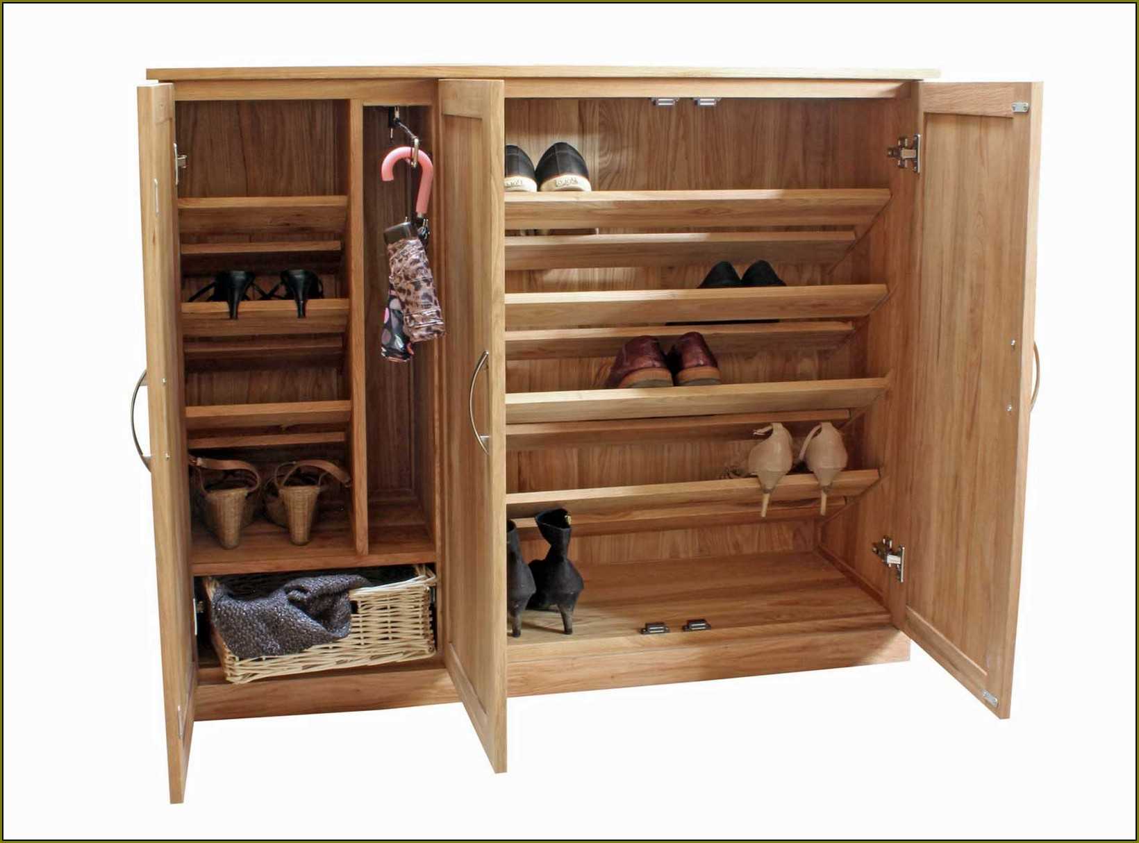 - Шкаф-обувница. Это полноценный шифоньер, рассчитанный на установку в просторном помещении. Главное преимущество – большая вместимость, в многочисленных отсеках можно хранить не только обувь, но и верхнюю одежду. Схемы и чертежи таких моделей достаточно сложные, их разбор и воплощение в жизнь для начинающего мастера могут стать непосильной задачей.