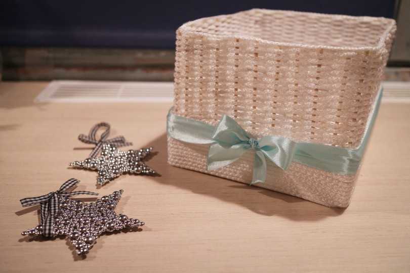 Если нет навыков плетения, то вместо самой корзины можно использовать стилизованные под нее картонные коробки и пластиковые контейнеры и салатники.