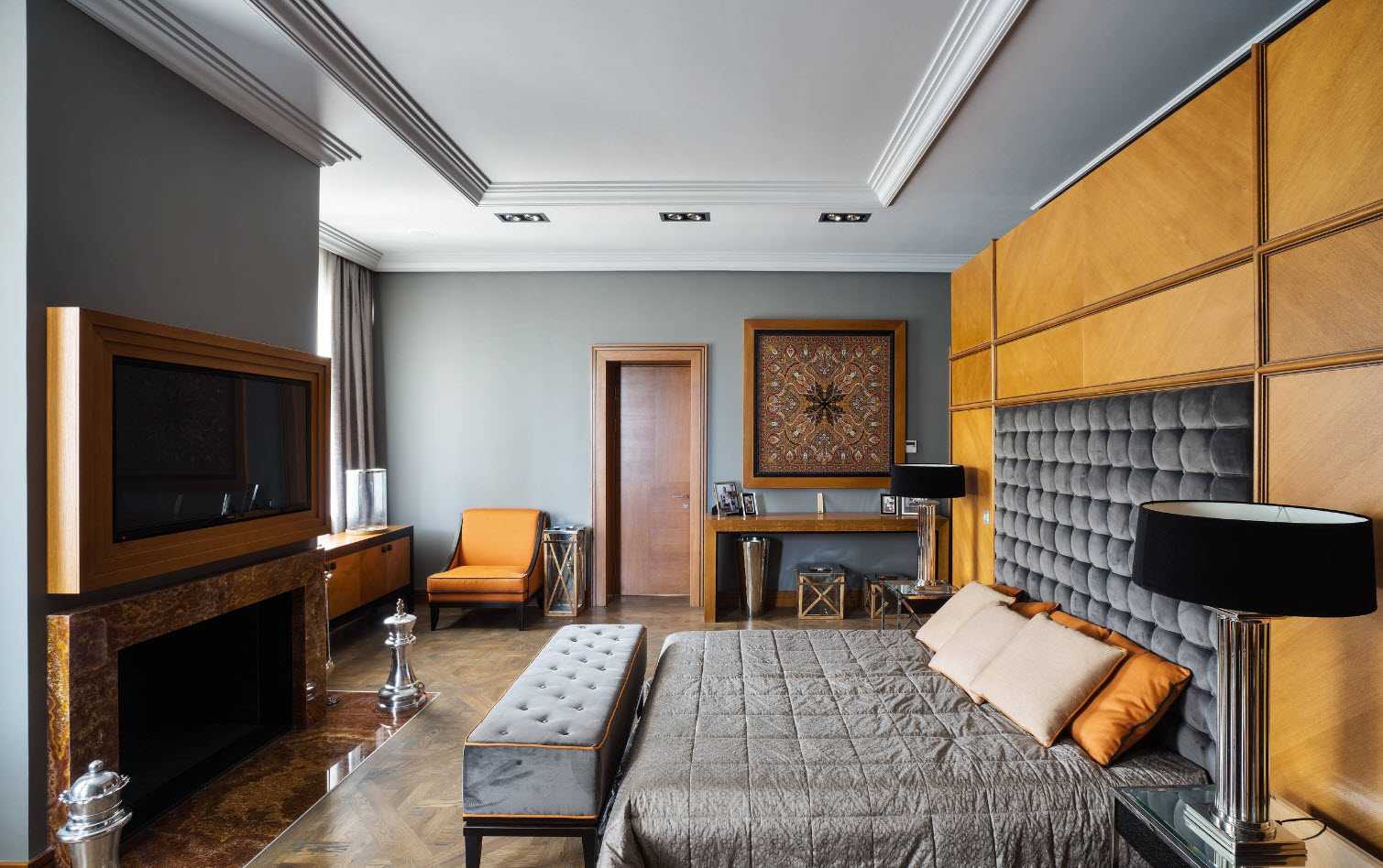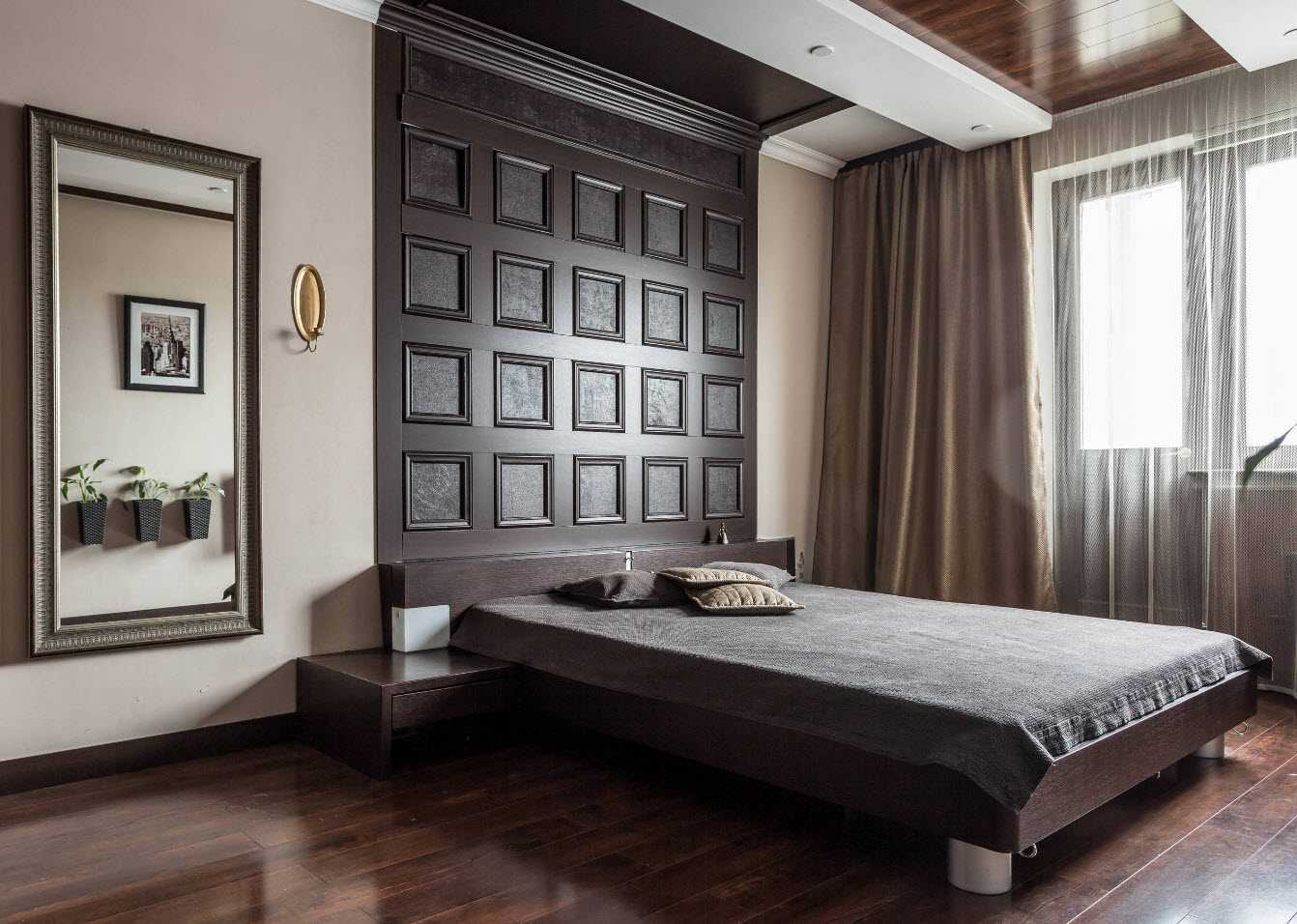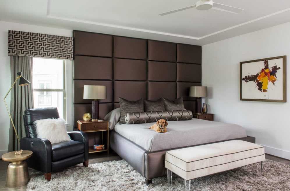 Благодаря такому красивому изголовью, оформленному с помощью качественной ткани, натуральной кожи, экокожи или козжама, в сочетании с деревом, получается наделить обстановку настоящей роскошностью и презентабельностью.