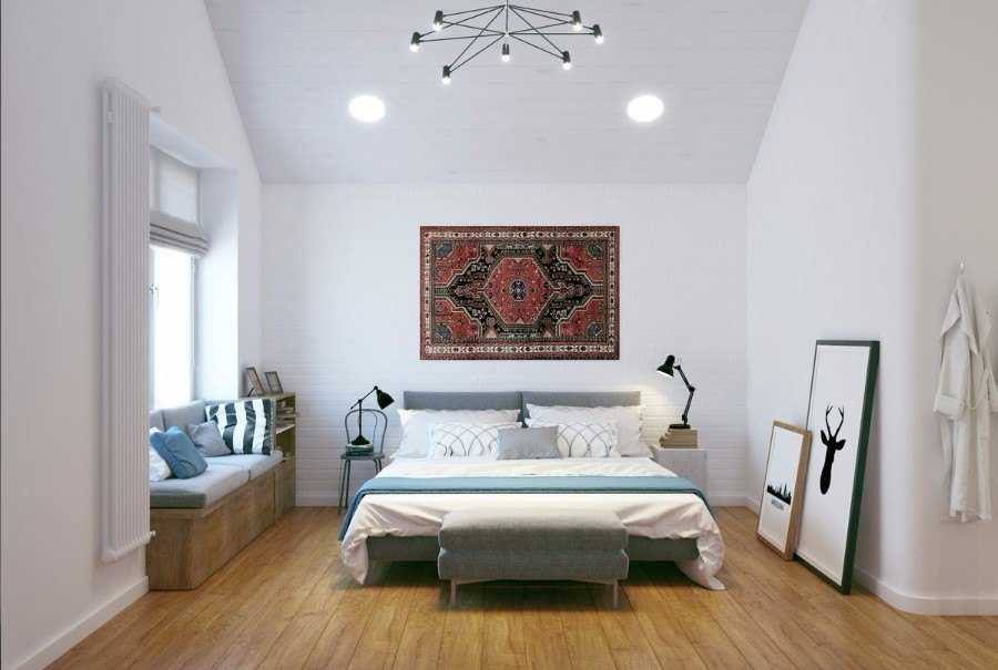 В большинстве случаев рассматриваемый аксессуар располагается на стене, примыкающей к изголовью кровати. Естественно, можно вешать его и другом месте, но такое встречается намного реже.