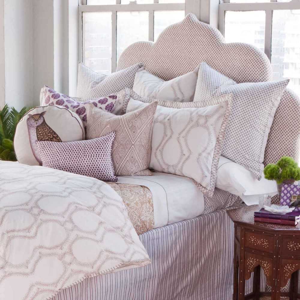 На фото ниже показан вариант, когда помимо изголовья можно украсить этой же тканью и весь периметр кровати.
