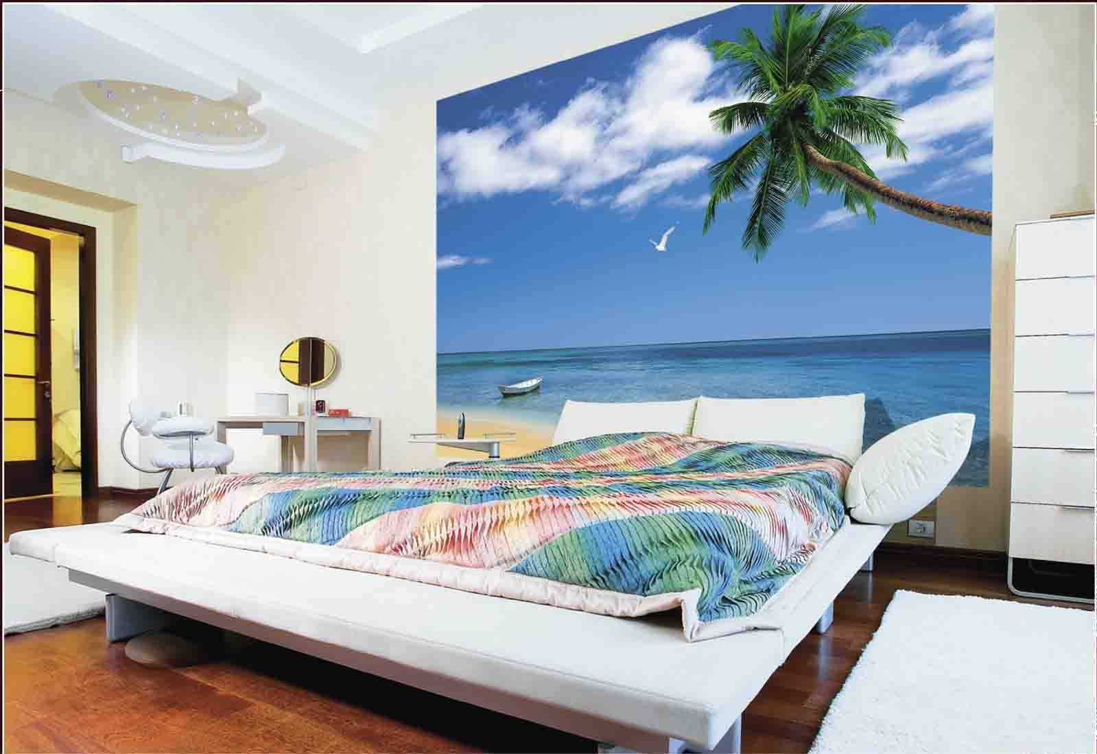 использование картин с живописными пейзажами для декорирования изголовья кровати