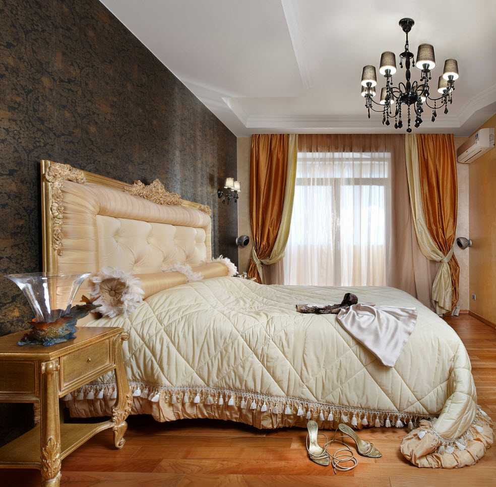 2. Материал для обивки. Это может быть ткань, как простая хлопковая или льняная, так и богатая велюровая — все зависит от общего стиля оформления спальни. Кроме того можно использовать кожу или более экзотические материалы.Однако стоит помнить, что в спальне уместны экологичные и «комфортные» материалы.