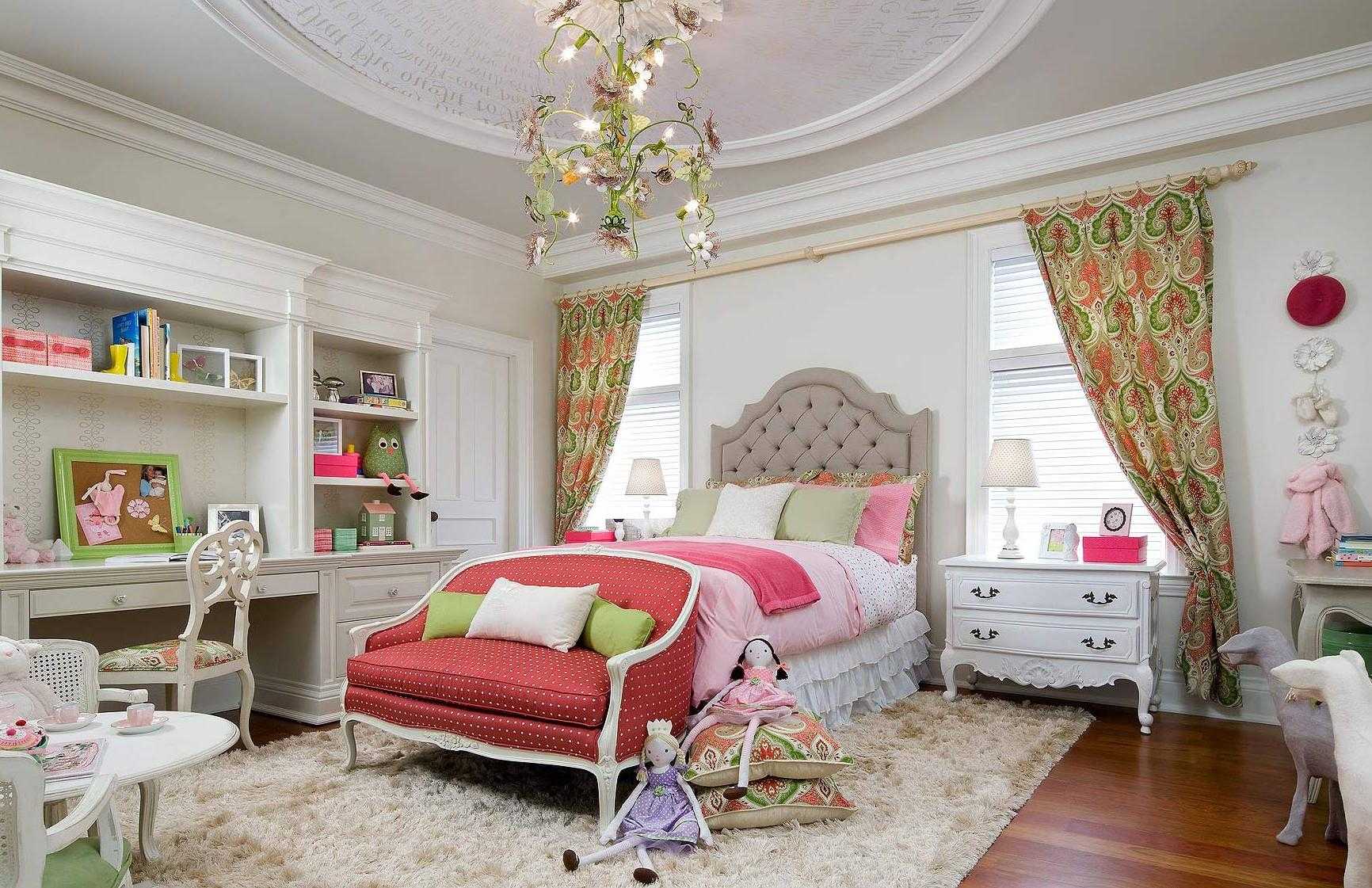 На фото детская комната с белой односпальной деревянной кроватью на ножках.