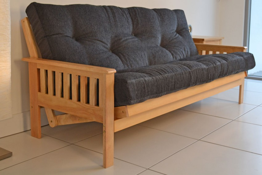 Для каркаса спинки и сиденья делается решетка из бруса и реек. Снизу можно закрепить лист ДВП, что защитит поролон от загрязнения. Оба элемента соединяются специальным механизмом и крепятся к основе. На решетки укладываются листы поролона и обтягиваются тканью.