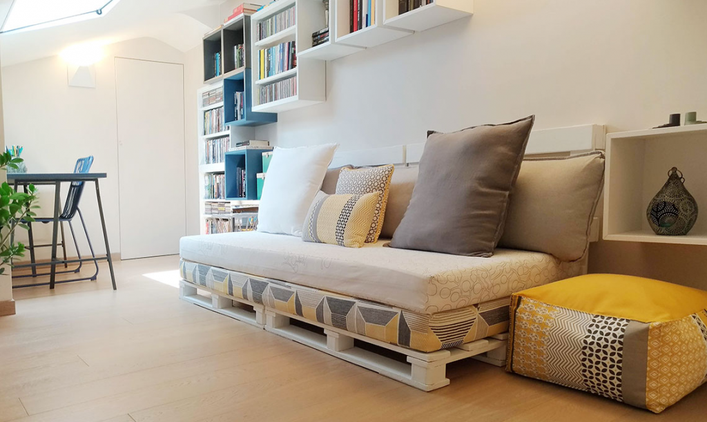Диван из поддонов – новое и максимально дешевое решение, которое подойдет для всех квартир, ресторанов и кафе. Поддоны обеспечат добротную конструкцию вашему дивану. Именно они, и являются его основой. Они легкие и универсальные для любого помещения, имеет свой «эко-стиль», а также придают легкой романтики в ваш дом.