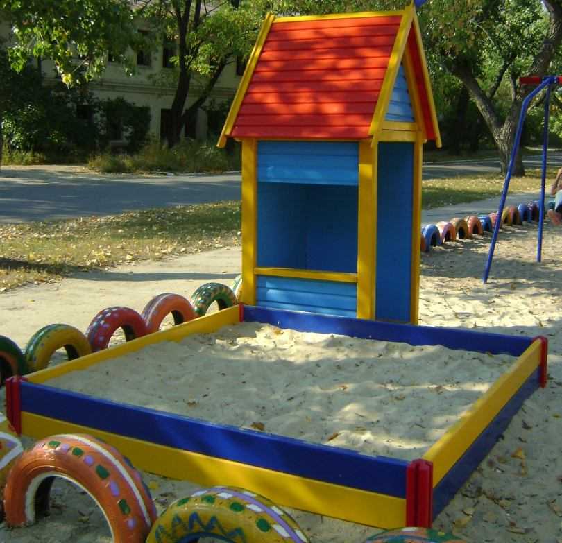 Декорирование. Посмотрите фото песочниц для детей: даже этот незатейливый предмет детской площадки может выглядеть красиво и оригинально. Покрасьте ее, украсьте веселыми рисунками и орнаментами.