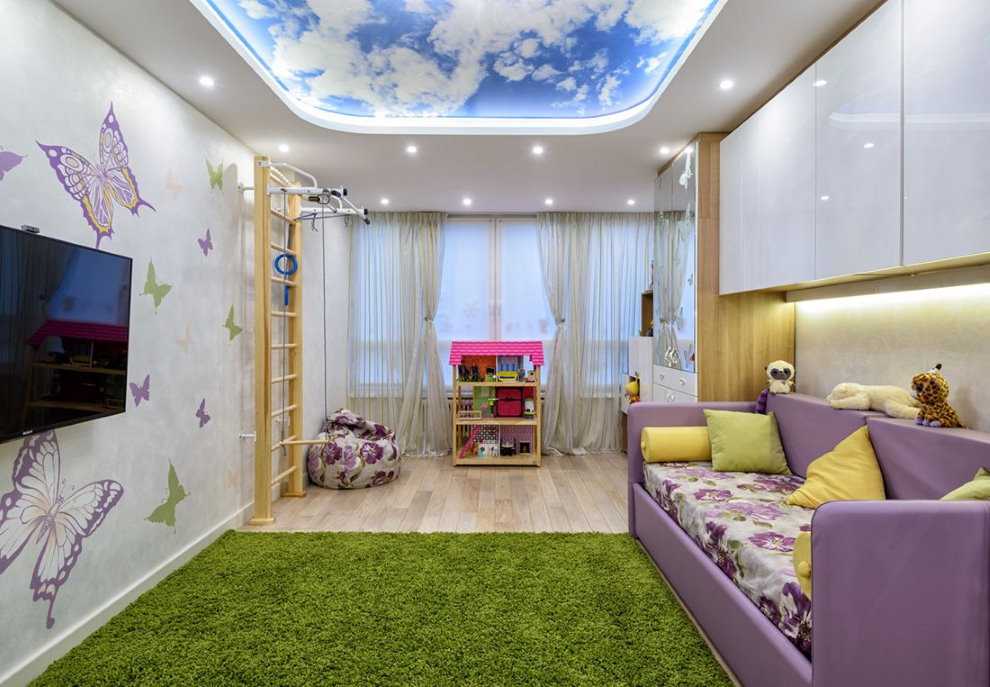 - При правильном распределении света по всей поверхности потолочной поверхности не только зрительно расширяют пространство, но и благотворно влияют на зрение ребенка.