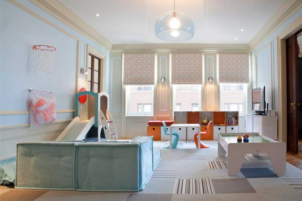 Основными источниками света всегда оставались светильники, свисающие с потолка. Можно таким способом осветить стол для занятий уроками, рисованием и прочими занятиями, требующими яркого освещения. Игровая зона также нуждается в таком освещении.