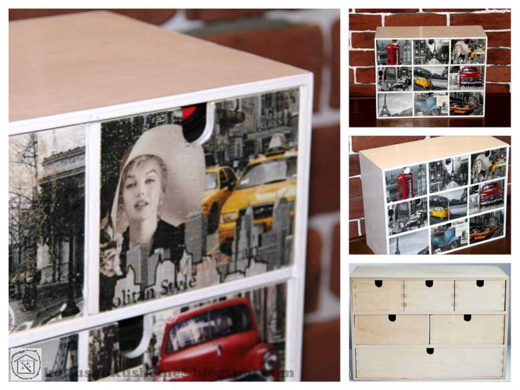 Техника декупажа, с помощью которой вам предстоит обновить шкаф, заключается в следующем: