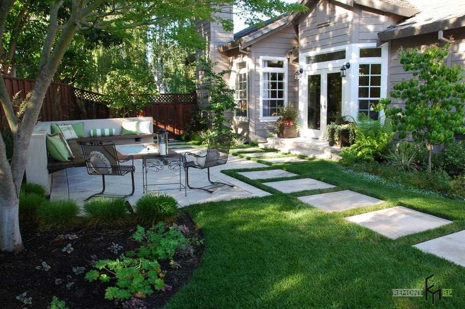 Второе, но не менее важное, это тот материал, с которым будет работать дизайнер. Если вы не готовы каждый день перемывать веранду, дорожку лучше сделать сплошной и использовать камень или бетонные блоки