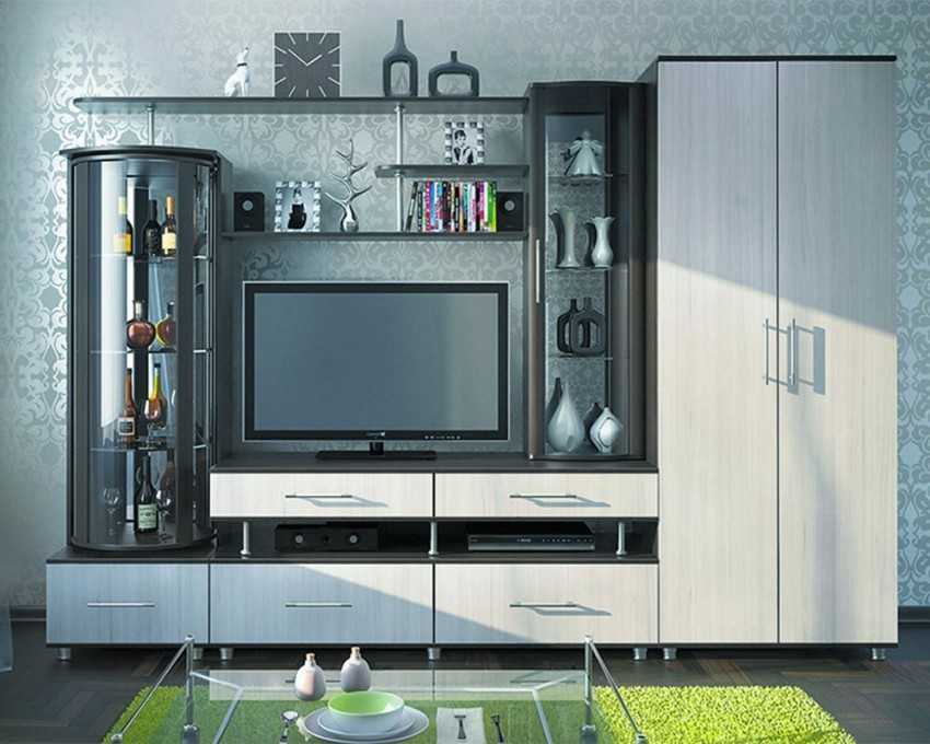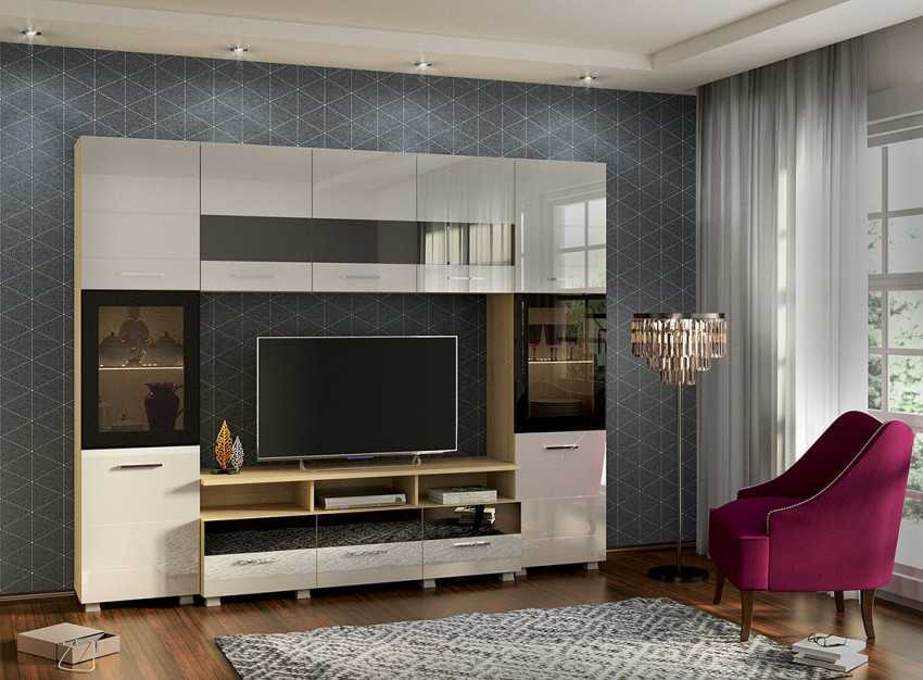 - Модульные. Состоят из нескольких секций, схожих по стилю, цвету, материалу. Их можно комбинировать, соединять или размещать отдельно в разных частях комнаты. Такая система является мобильной, функциональной, позволяет выгодно обыграть пространство помещения.