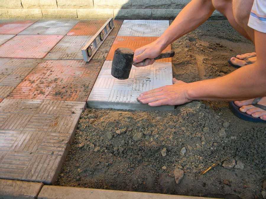 Фигурные виды раскладки плитки дают возможность создавать рисунки ещё интересней. Эффектно смотрятся площадки с использованием фактурных плиток. Но новичкам без опыта лучше остановить свой выбор на более простых в мощении видах. Не рекомендуется браться за укладку плитки типа «ромб», «кирпич» и «брусчатка». Они самые сложные в укладке, даже мастера занимают мощением этих видов за более высокую цену. При этом площадки следует выбирать правильных геометрических форм. В таком случае можно минимизировать, а то и избежать обрезания выступающих частей плиток.