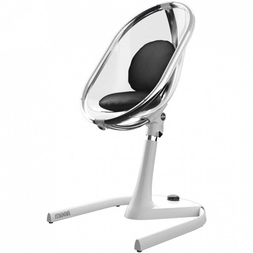 Опирается каркас на крестовину, задние ножки которой оборудованы небольшими колесиками во избежание риска опрокидывания. Открытая конструкция позволяет ребенку без труда забраться на стул самостоятельно.
