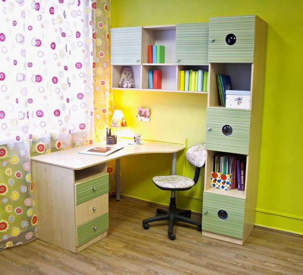 Приобретая комплект детской мебели, в который уже встроено рабочее место, нужно учитывать вышеуказанные требования к расположению стола относительно освещения. Хорошо, если предметы такого гарнитура мобильны и можно переставить на свое усмотрение. Если такой возможности нет, то необходимо все-таки приобрести полноценный письменный стол.