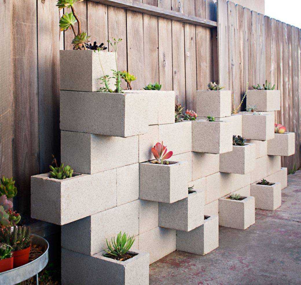 Бетон для вазонов на улице отлично сохраняет необходимую влагу, в них не будут нагреваться. Но такие цветники очень тяжелые, подходят лишь для больших участков.