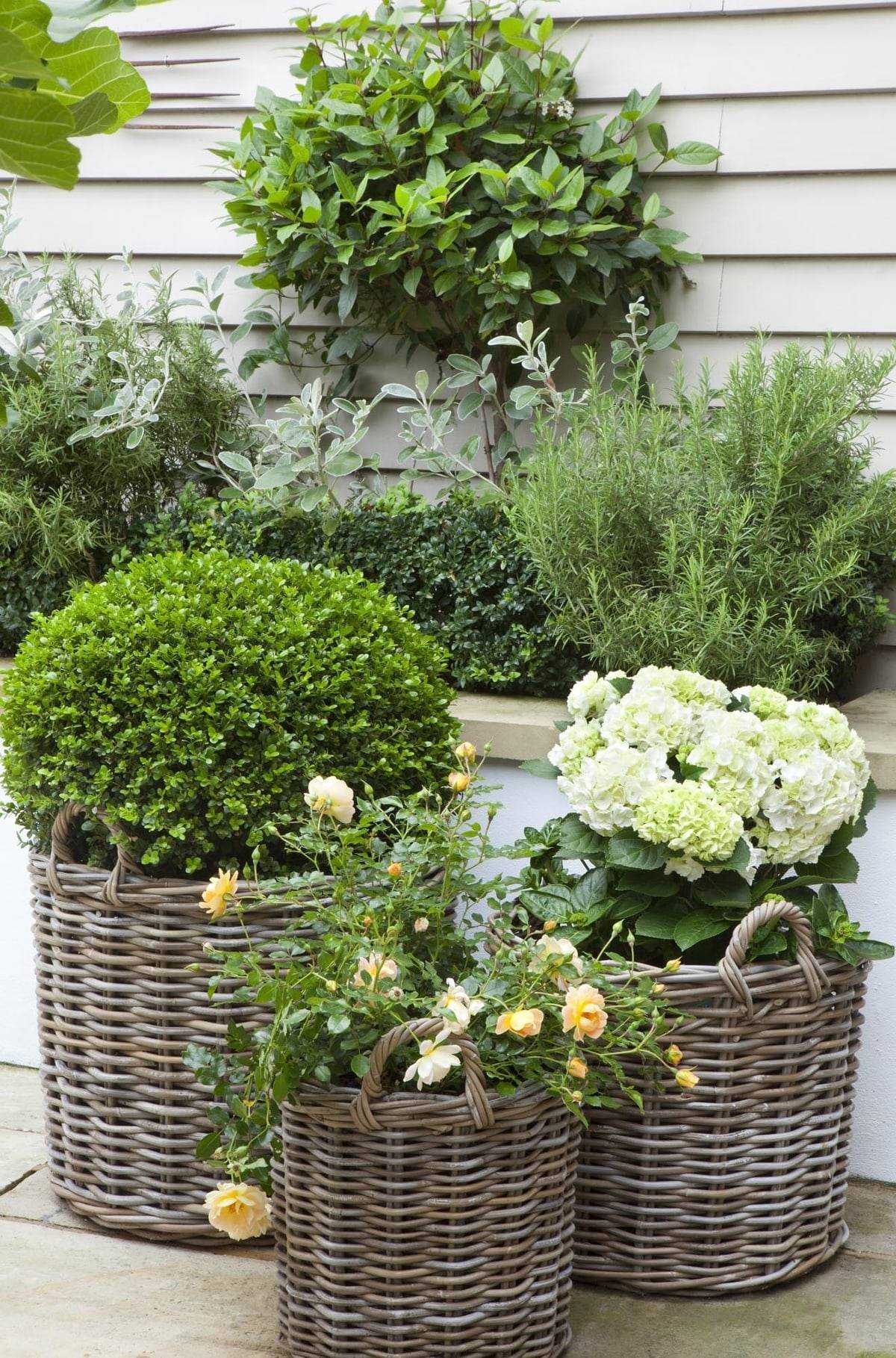 Гораздо интереснее комбинировать контейнеры, разные по высоте и форме. Такая группа может сформировать интересную композицию.