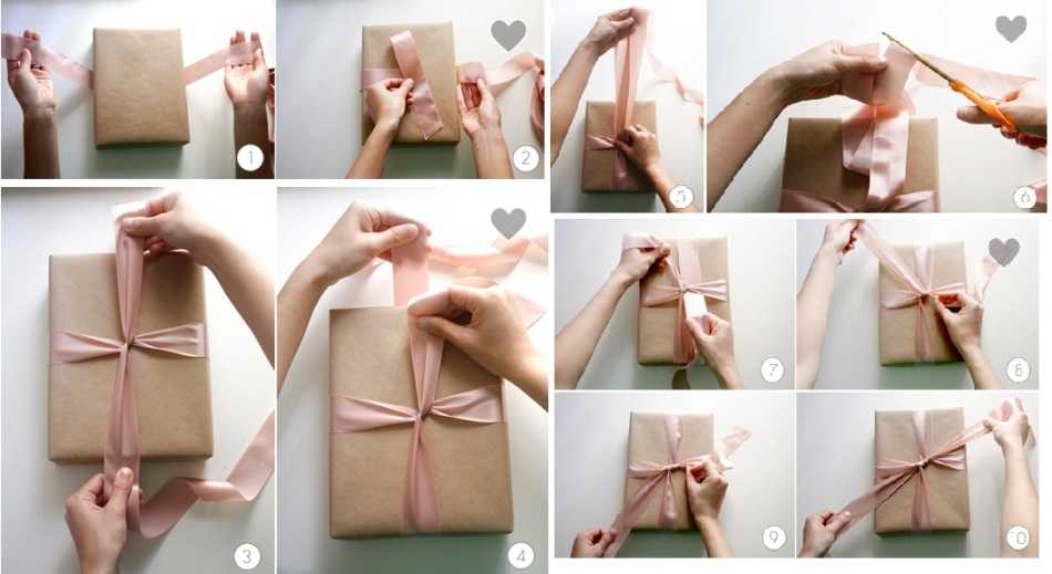 схема упаковки подарка лентой