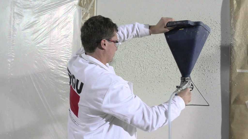 нанесения отделки: путем напыления специальным пистолетом или вручную, при