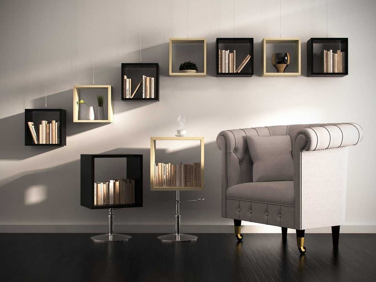 Большое разнообразие моделей позволяет подобрать наиболее оптимальную конструкцию под любую площадь. Если планируется открытое хранение печатных изданий нестандартной формы и размеров, лучше их размещать горизонтально. Средний вес книг, который может выдерживать одна полка, варьируется в пределах 5-20 кг.