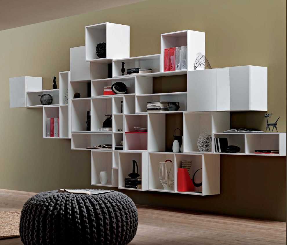 Полки в гостиную в разном стиле