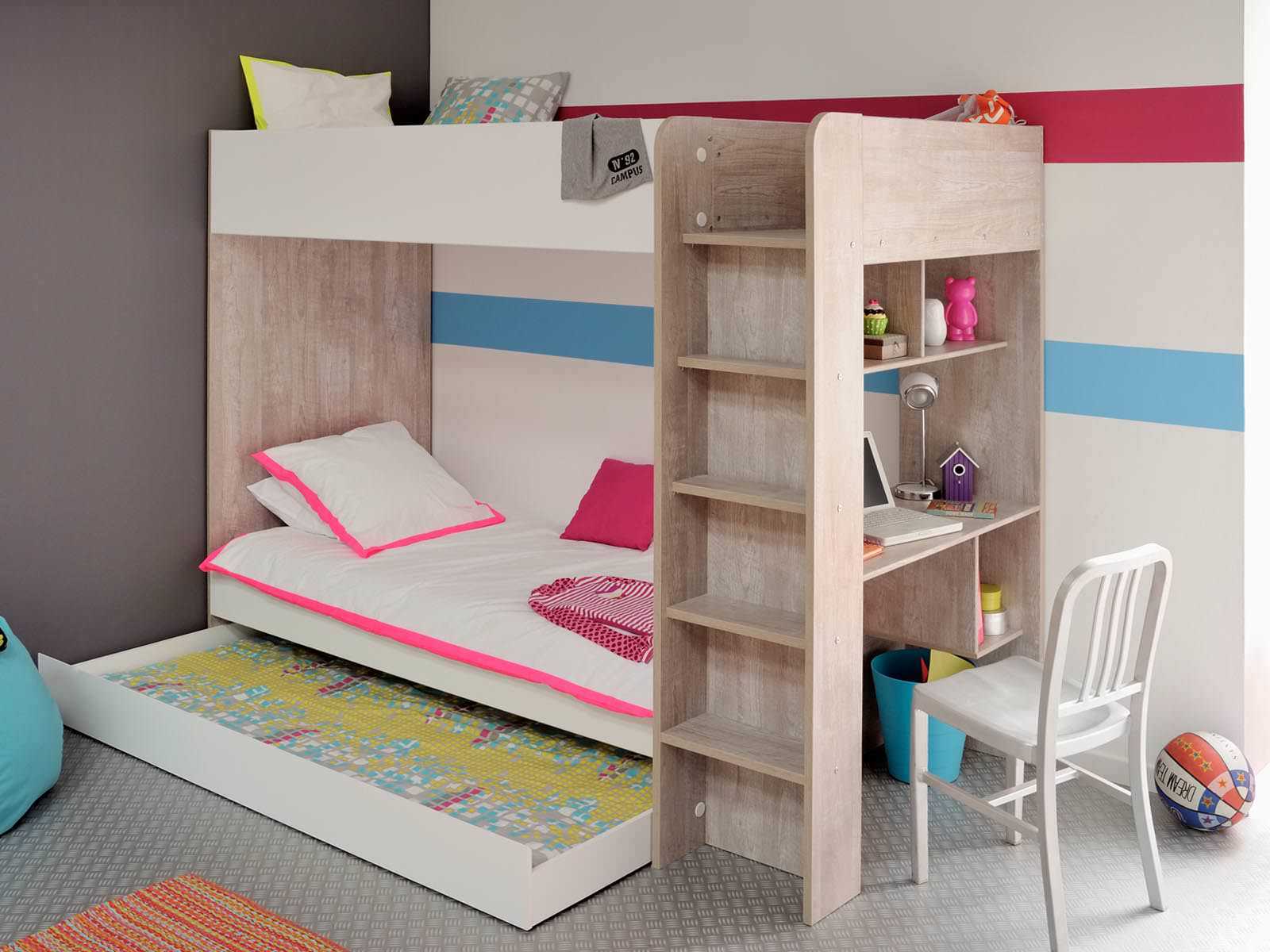 У таких моделей нет места для хранения вещей, но это удобно для дачи или квартиры бабушки с дедушкой, куда дети приезжают на каникулы. Если у разнополых детей общее игровое и учебное пространство, мебель должна быть светлой, нейтрального дизайна.