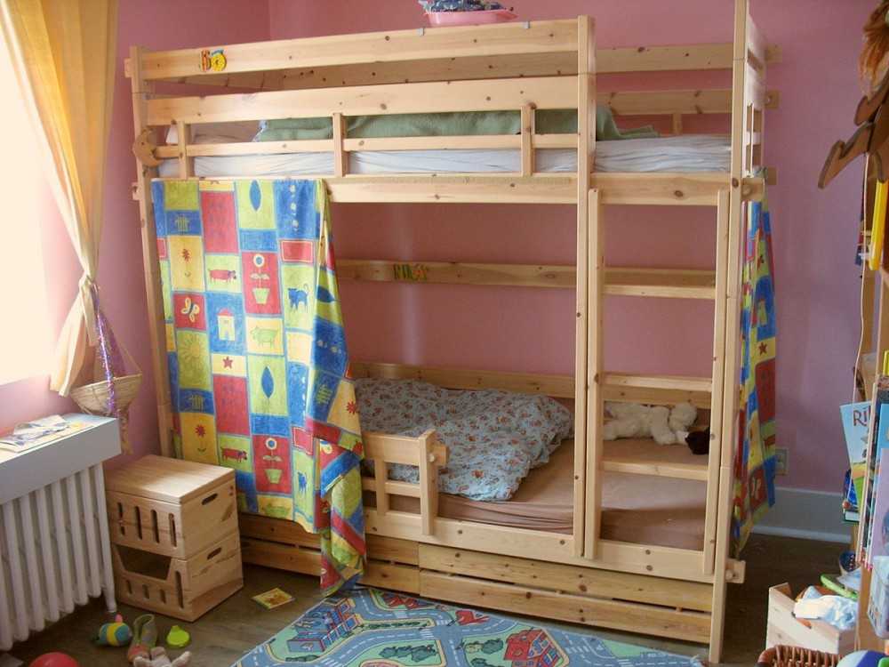 При выборе такой кровати позаботьтесь в первую очередь о безопасности детей: углы должны быть обработаны, закруглены, не должны выступать острые части и крепежные элементы. Все же это один из самых небезопасных видов кроватей.