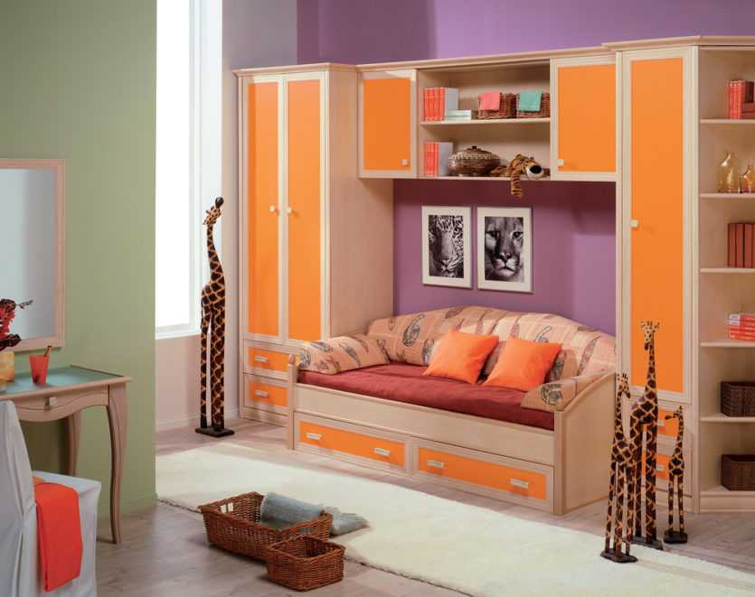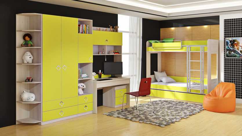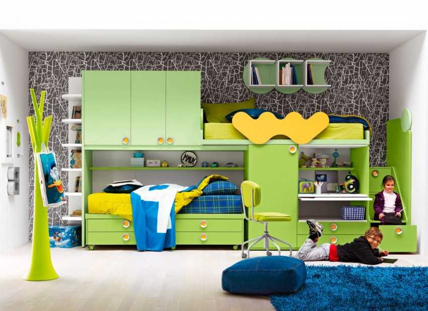 Если учесть последнее правило, то сюда подойдет современная мебель для детской. Предметы модульного типа наилучшим образом справятся с задачей размещения разнополых детей разных возрастов.