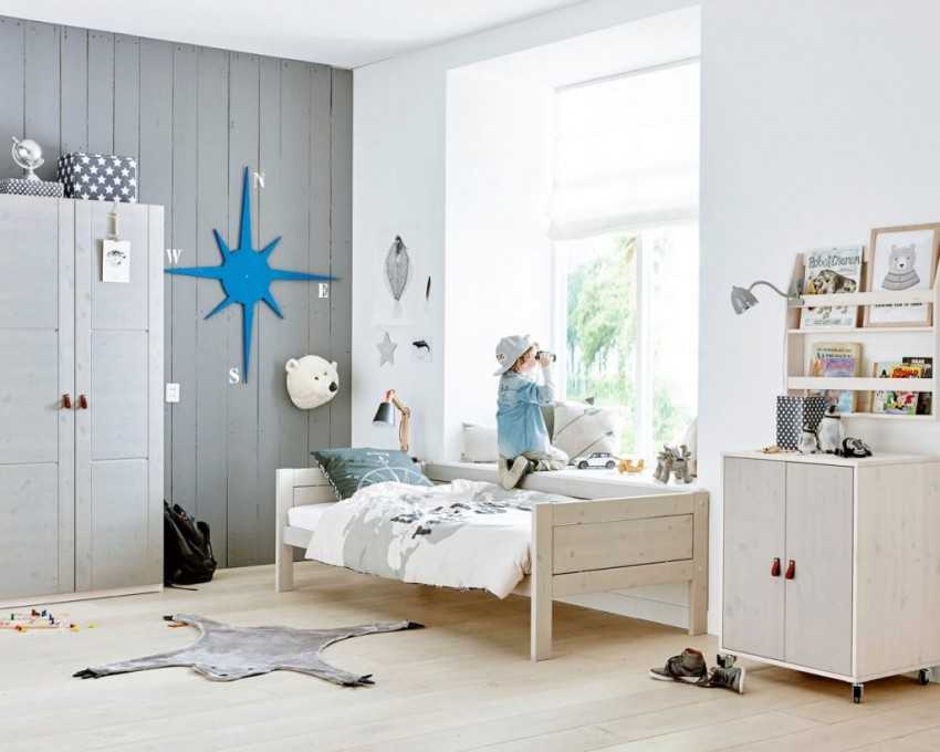 Морской интерьер выглядит по-разному для девочки и мальчика, подойдет для малышей и подростков. Из-за обилия белого и синего цветов применяется для южных комнат чтобы «освежить» детскую холодными оттенками.