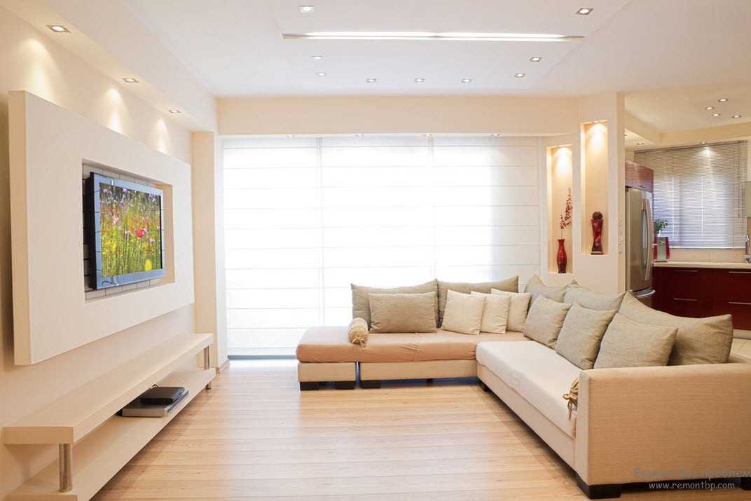 Если стены выполнены из гипсокартона, то вес подобного оборудования они могут не выдержать. Этот аспект обязательно нужно учитывать при планировке размещения телевизора в любой комнате. Встроенная подсветка при оформлении ТВ-зоны может создать определенный оптический эффект, который сделает помещение более уютным и просторным.