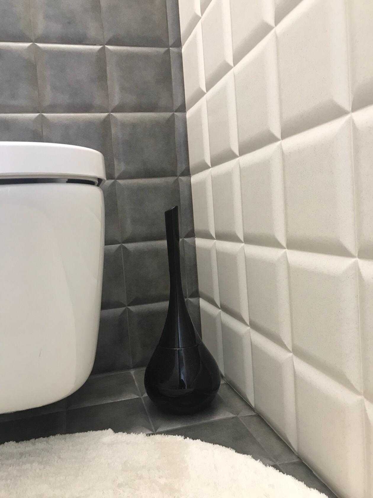 Белая плитка создает ощущение чистоты и простора в туалете. Насыщенность белого меняется от теплого молочного оттенка до холодного с синевой, поэтому его можно вписать в любую интерьерную гамму.