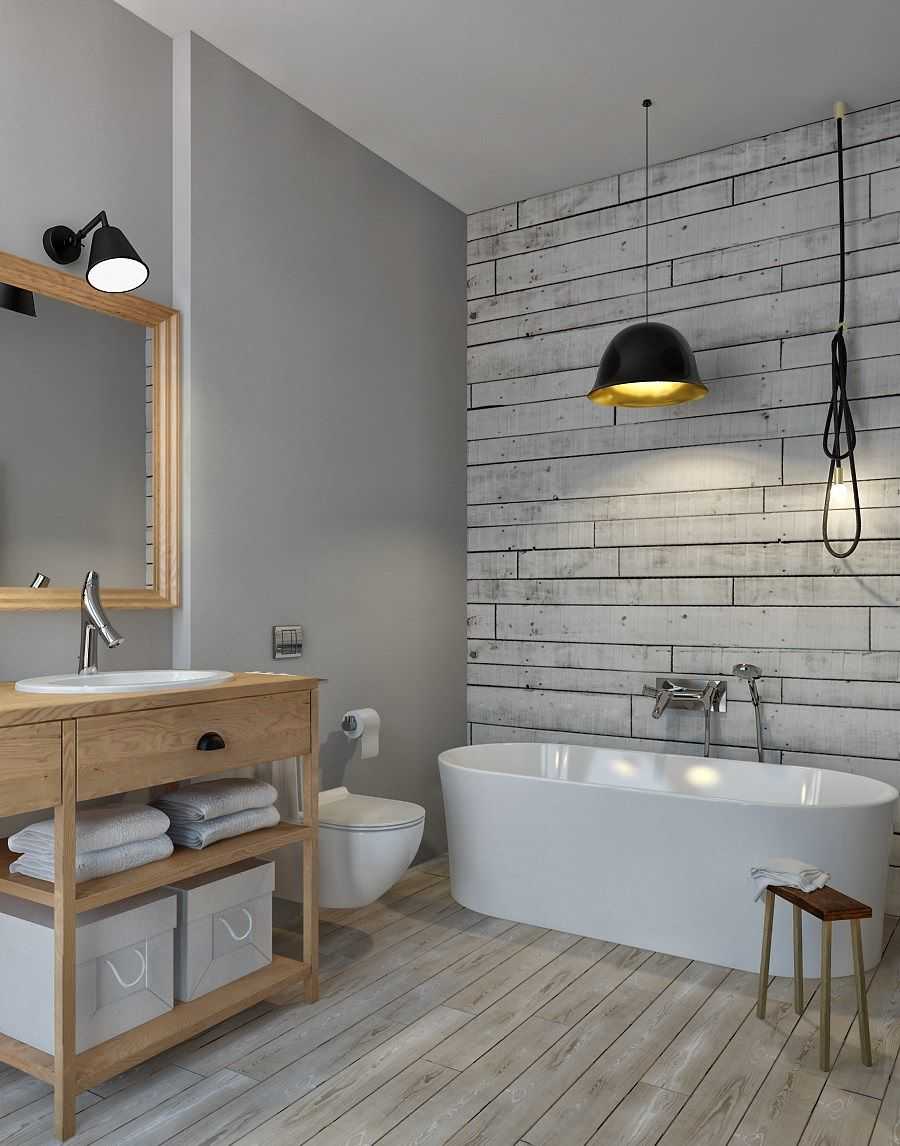 Способов отделки стен в ванной комнате и туалете существует невероятно много. Классикой в данном случае можно смело назвать керамогранит. Правда, останавливаться именно на плитке нет никакой необходимости. Вполне уместно использование натурального дерева. Главное, обработать его защитным составом.