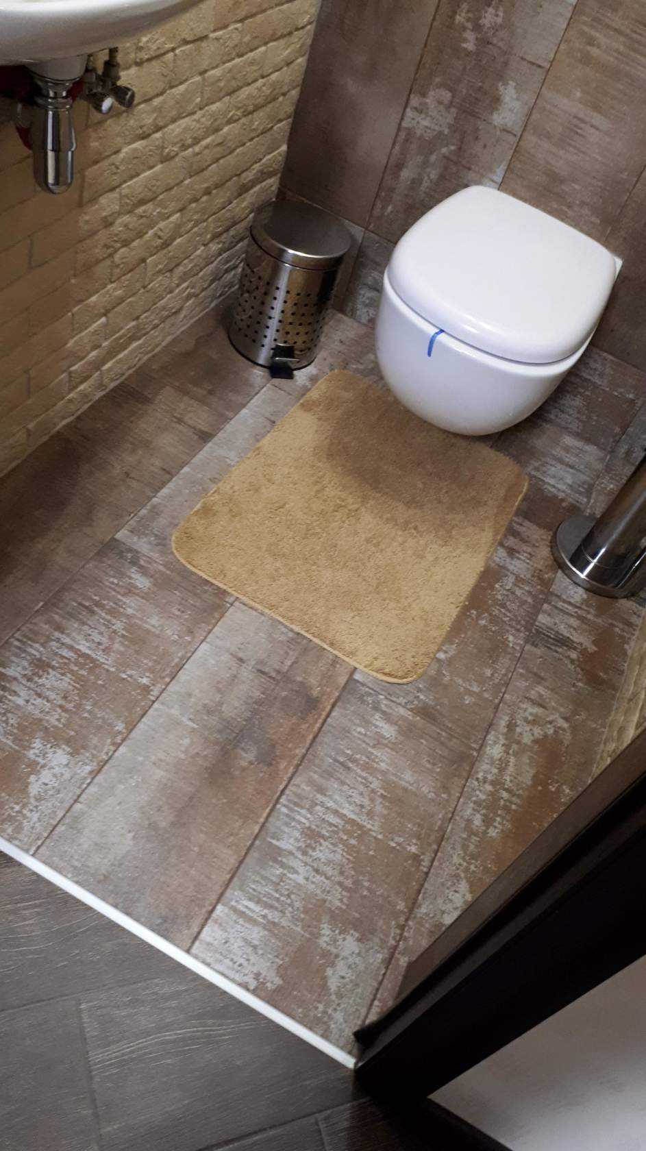 Влаги и дезинфицирующих средств она абсолютно не боится, а это немаловажное условие для туалетного помещения. Можно конечно использовать и водостойкие краски, но приоритет все-таки остается за керамикой, особенно в качестве напольного покрытия