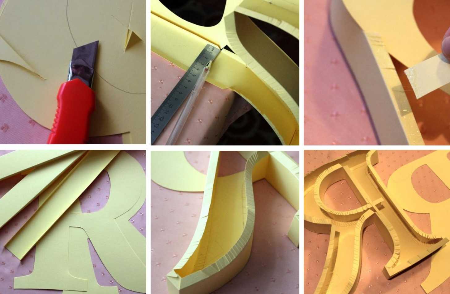 Процесс изготовления объёмной буквы из бумаги состоит из следующих шагов: