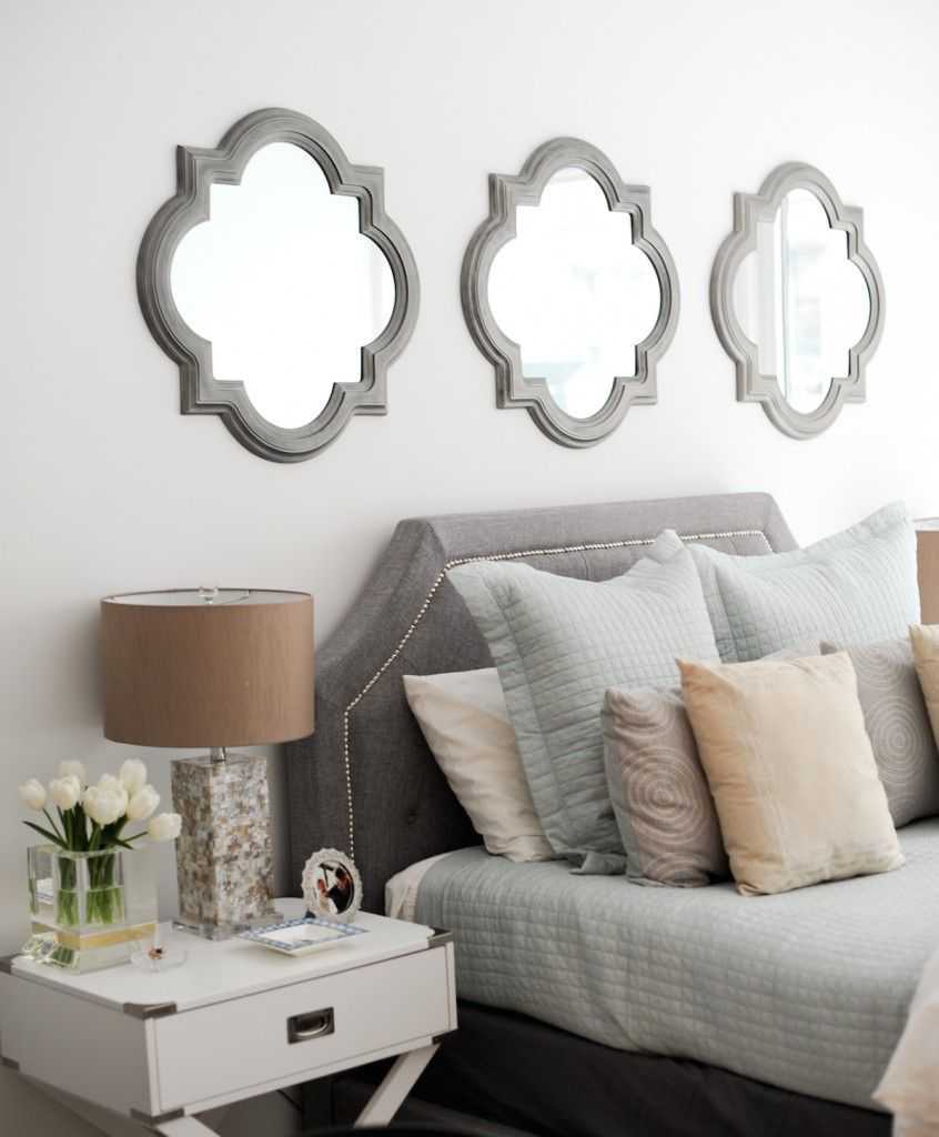 Таким образом, зеркало отлично вписывается в интерьер спальни, выполняя практическую и декоративную функции