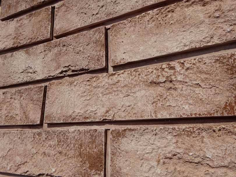 Имитация природного сланца имеет природные оттенки: серые, коричневые, бежевые и красноватые. Фактура такой плитки неравномерная, «рваная». Такой декор чаще используется для фасадных работ.