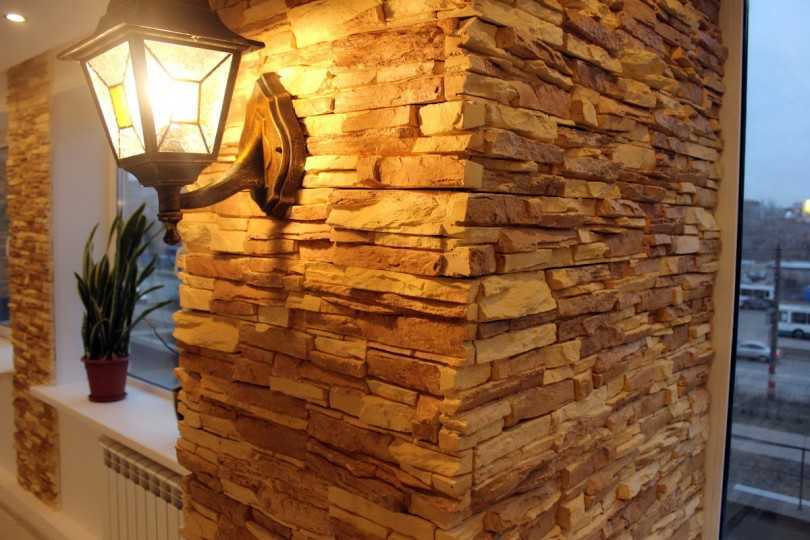 Следует тщательно продумать варианты правильного освещения той поверхности, где будет присутствовать искусственный камень. На стенках можно закрепить небольшие светильники, подходящие под концепцию интерьера.