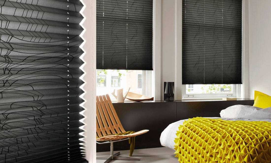Шторы типа плиссе под названием «День и ночь» являются сложной системой включающей два гофрированных полотна под общим руководством. Единый механизм управления позволяет на день поднимать только прозрачную ткань, а плотную материю оставлять свернутой в рулоне внизу, ночью все происходит наоборот.