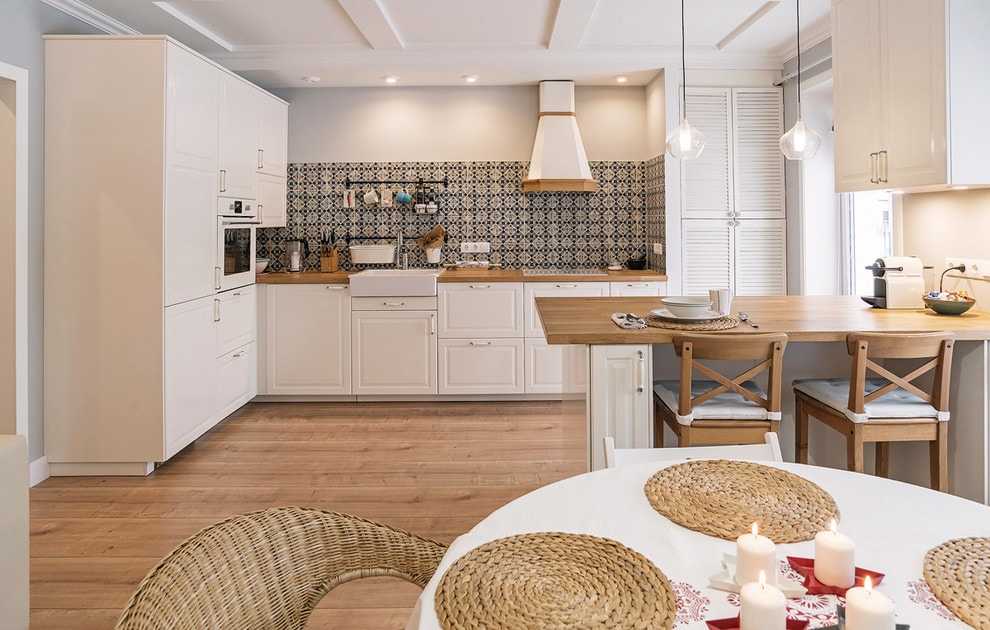 - Средиземноморский – ищите гармонию в цветах морской воды, солнечного света или песка. Неплохой вариант применения тканевых римских или рулонных жалюзи.