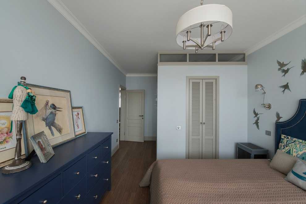 Для спальной отлично подойдут успокаивающие тона: синего, голубого фиолетового, зелёного оттенков. Цвета, повторяющие небесную гладь, солнечный свет, море или песок допустимы, при условии наличия «поддержки» в остальном интерьере.